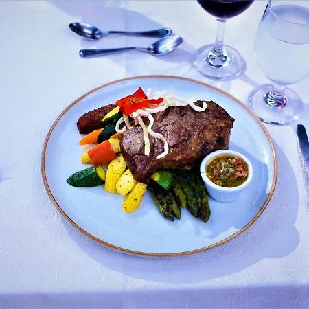 En buffet serveret på restauranten. Gæsterne kan nyde et måltid på a la carte-restaurant Oscars eller en drink i poolbar. Denne hyggelig bar er også tilgængelig.